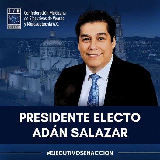 Adán Salazar es el actual Presidente Nacional de la Confederación Mexicana de Ejecutivos de Ventas y Mercadotecnia (COMEV), nombrado en marzo de 2024. Ingeniero de formación con amplia experiencia gremial, encabezó previamente la asociación EVM Chihuahua en 2020.